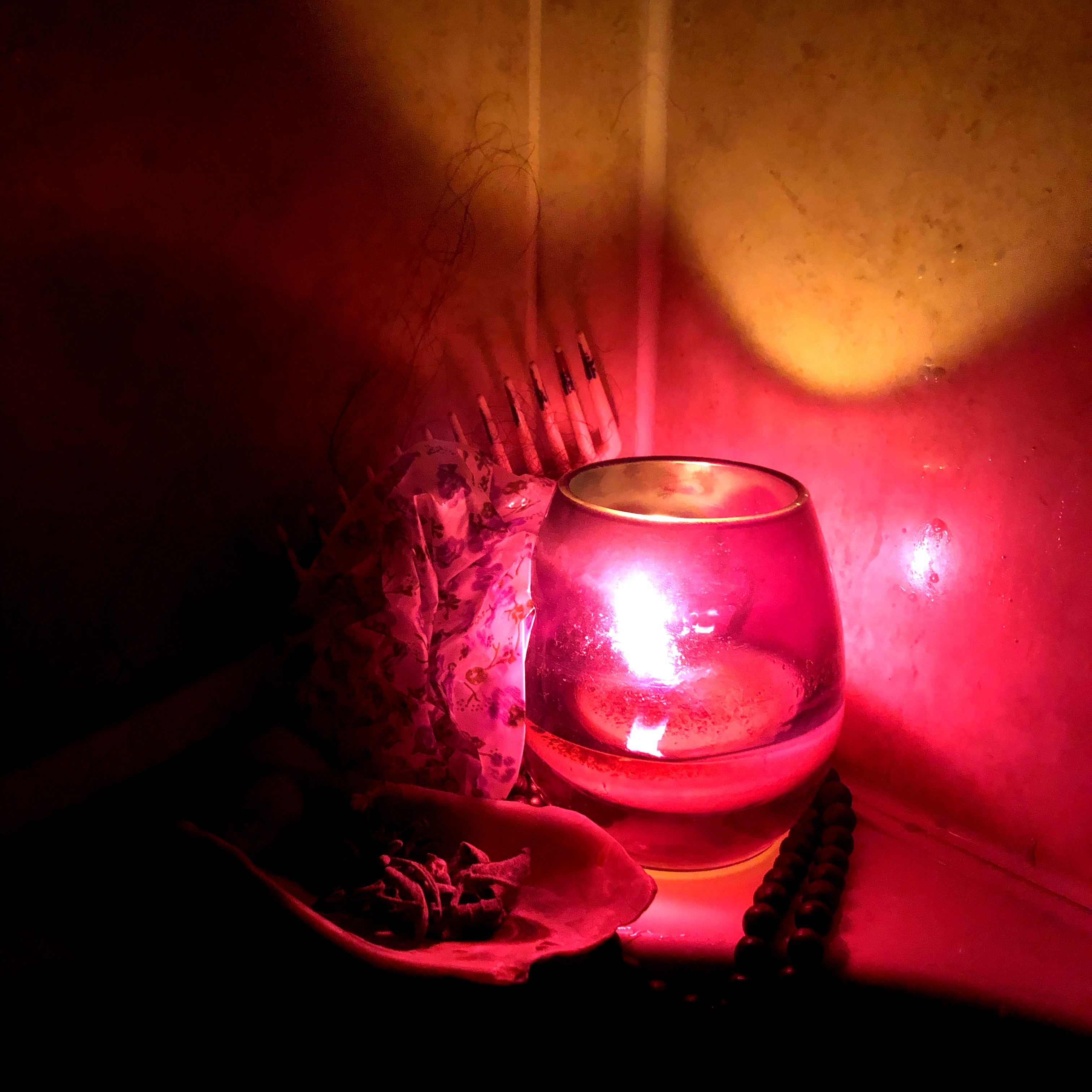 contents: sage, mistik, misbaha (prayer beads), hairbrush & hair